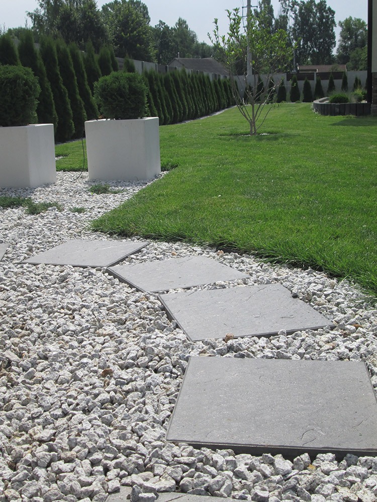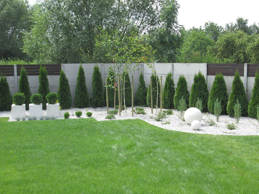 Ogród ten powstał jako kontynuacja po pierwszym etapie jakim była realizacja oczka wodnego z kaskadą, jest to ogród nowoczesny. dominująca barwa to zieleń, która estetycznie współpracuje z elementami architektury ogrodowej jakimi są kule i donice. Ogród ten jest dla osób ceniących elegancję i minimalizm.