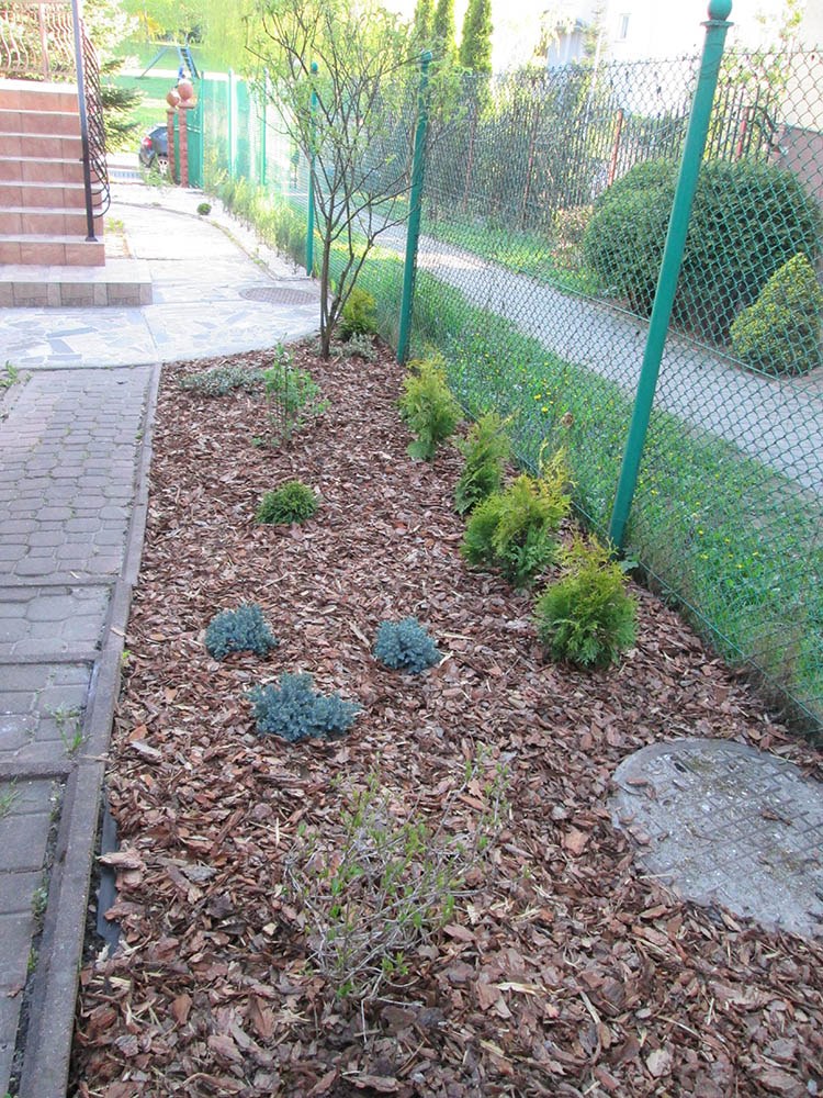 Jest to realizacja projektu ogrodu już istniejącego, usunięto w nim wszystkie uschnięte rośliny i obsadzono na nowo. Rabaty wysypano żwirem. rośliny dobrano tak, aby były bezpieczne dla dzieci.