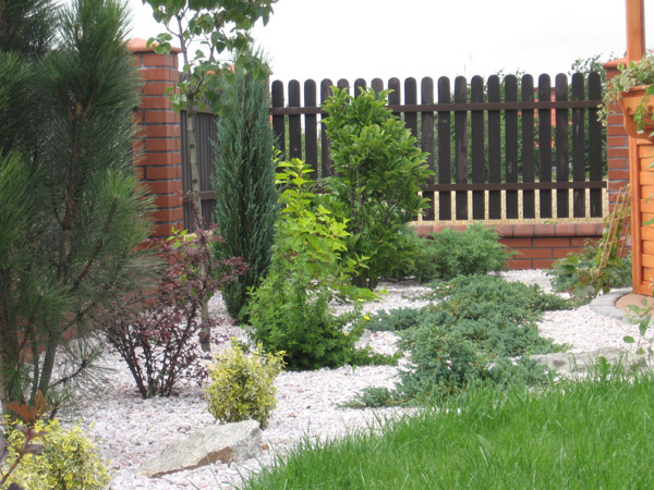 Projekt ogrodu ozdobnego z oczkiem wodnym na terenie Krakowa wykonany przez naszą firmę.