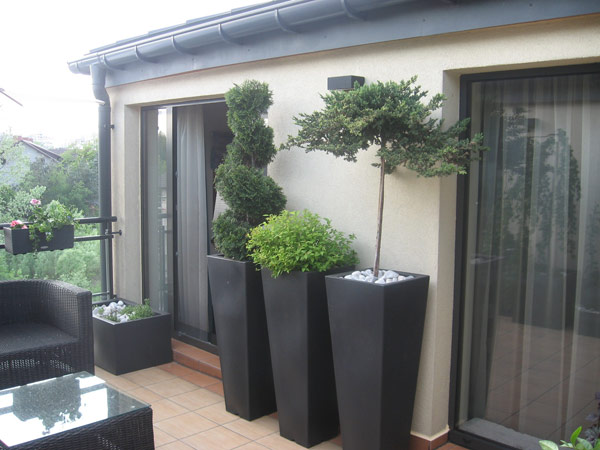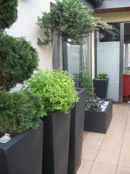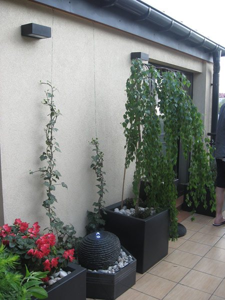 RELAKSACYJNY OGRÓD W NOWOCZESNYCH DONICACH Z ELEMENTEM WODNYM